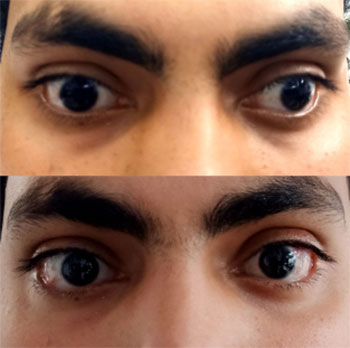Mis ojos se humedecieron. Los médicos no podían entender por qué me pasó esto. Agité mi mano y ordené O Caps. Después de 2 semanas, mis ojos estaban relajados, sin lágrimas ni sequedad. La foto muestra lcomo tenia los ojos antes del tratamiento.